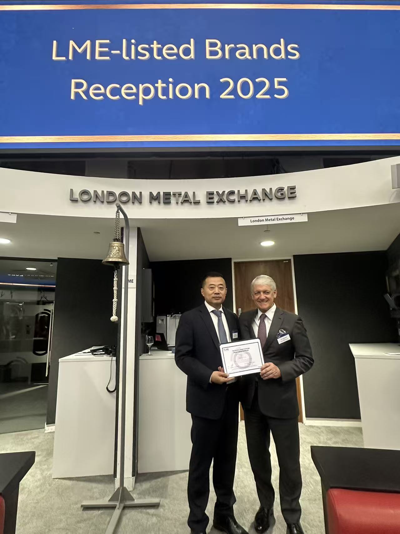 ▲LME主席John Williamson先生为格林美颁发证书